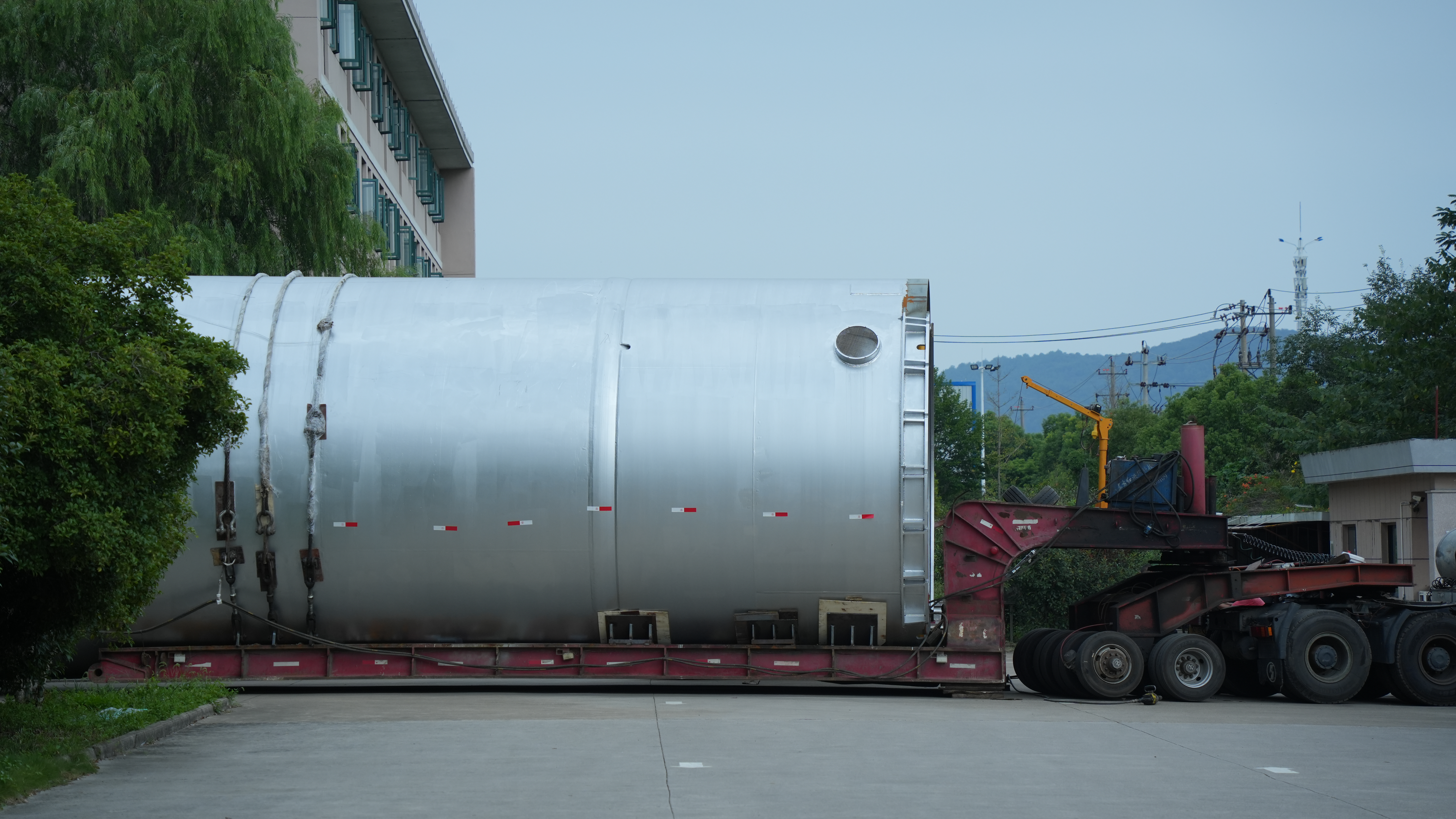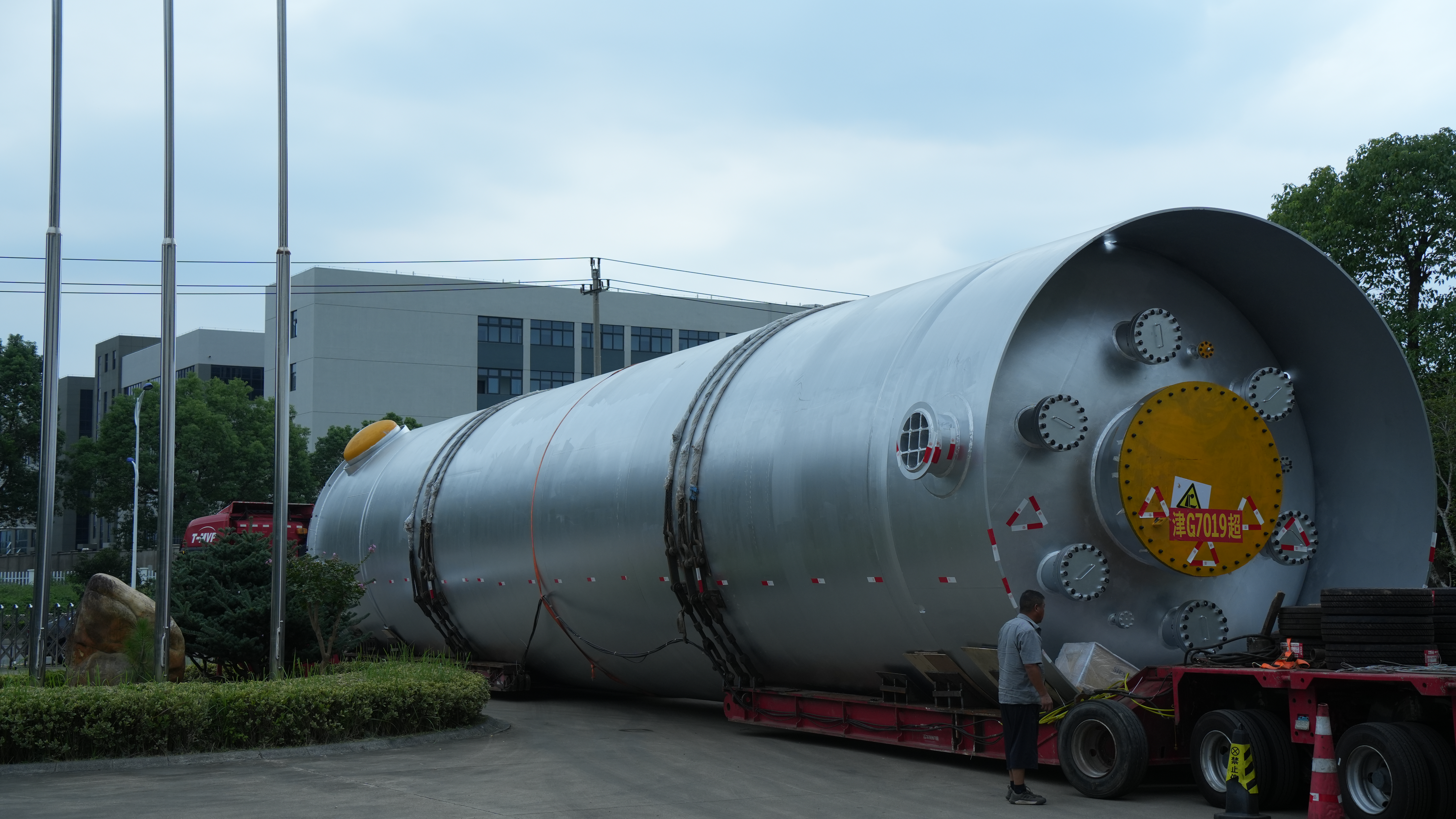 我公司制造的兩臺(tái)中科中綠空氣儲(chǔ)能項(xiàng)目的關(guān)鍵設(shè)備分子篩吸附器,尺寸:5000×25000,重大150噸/臺(tái),順利交付業(yè)主。