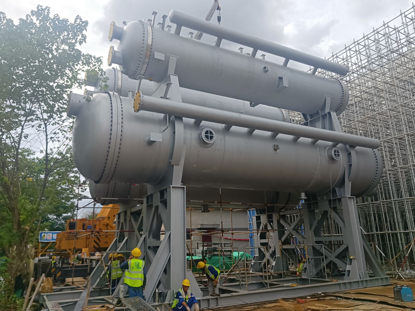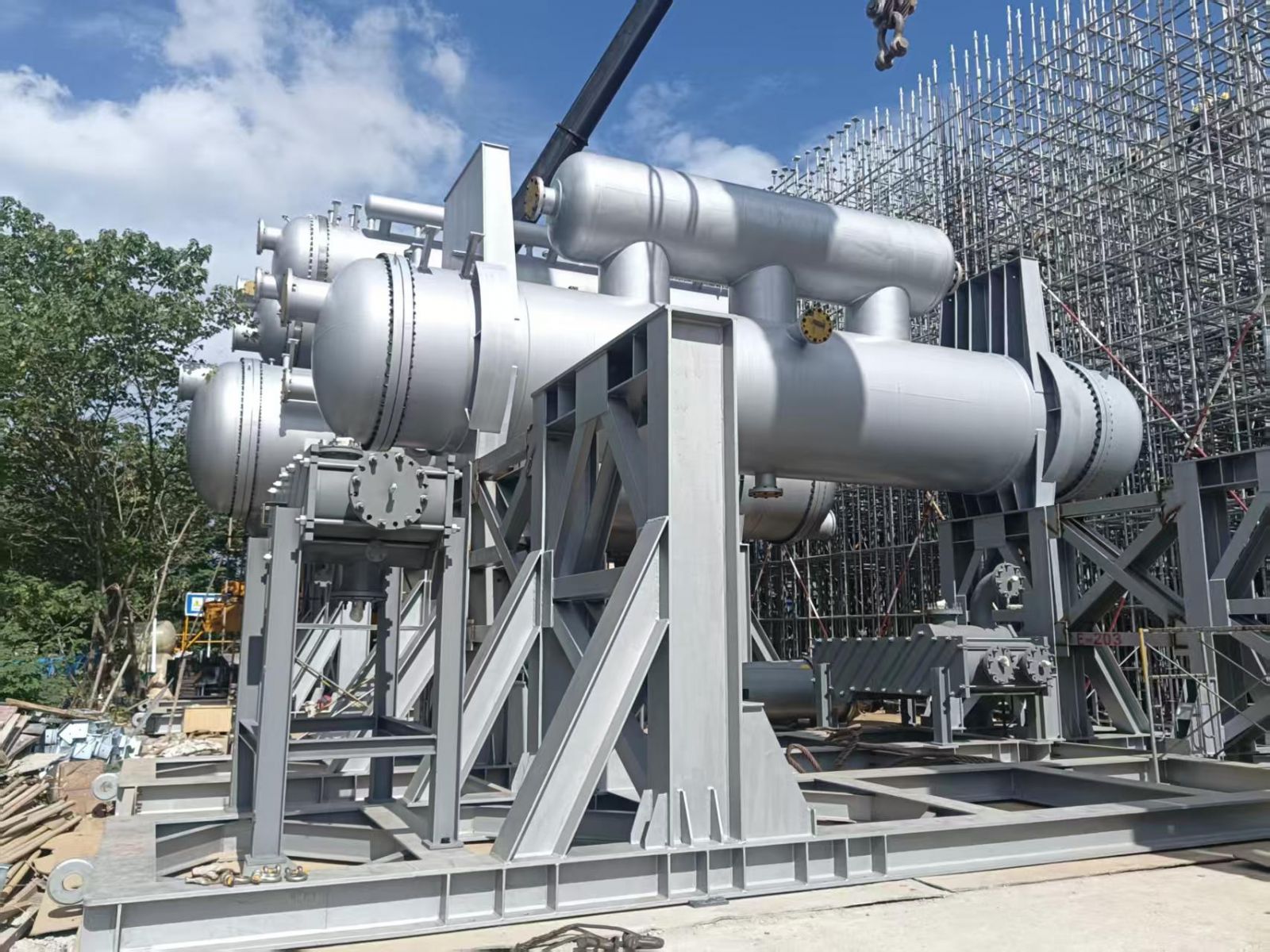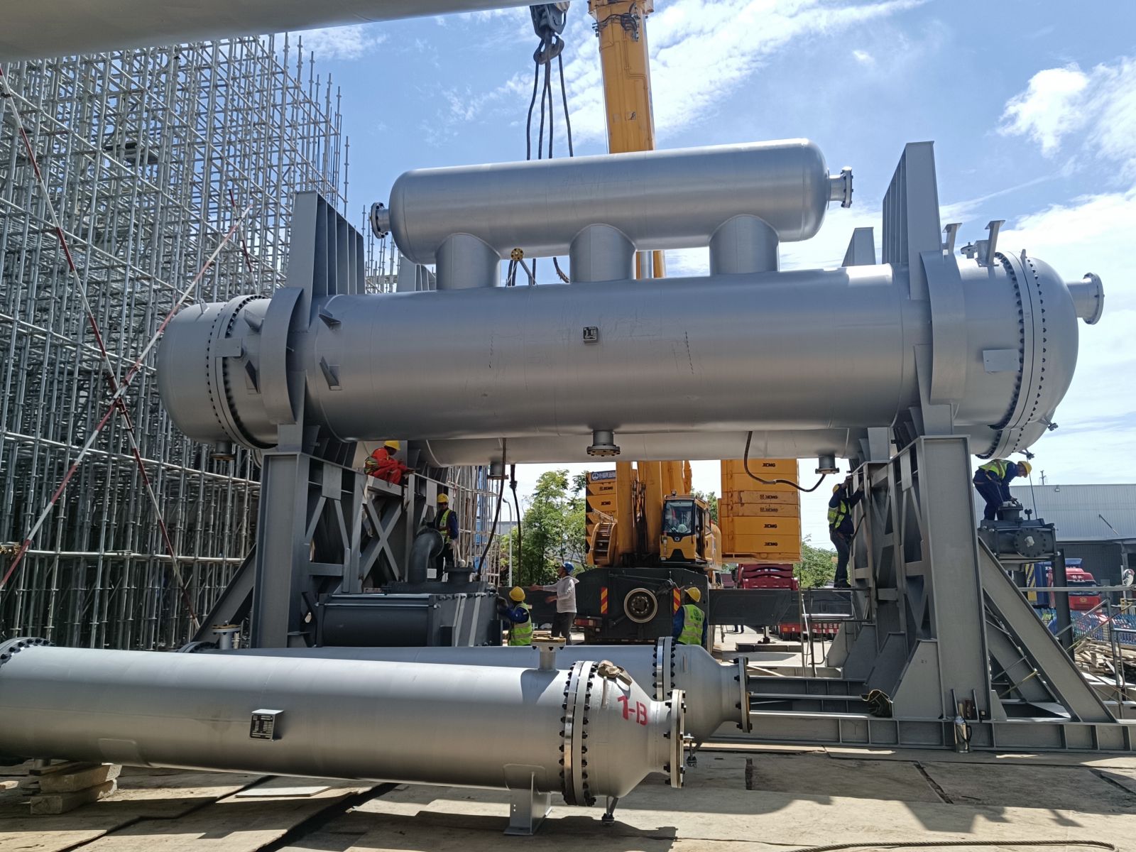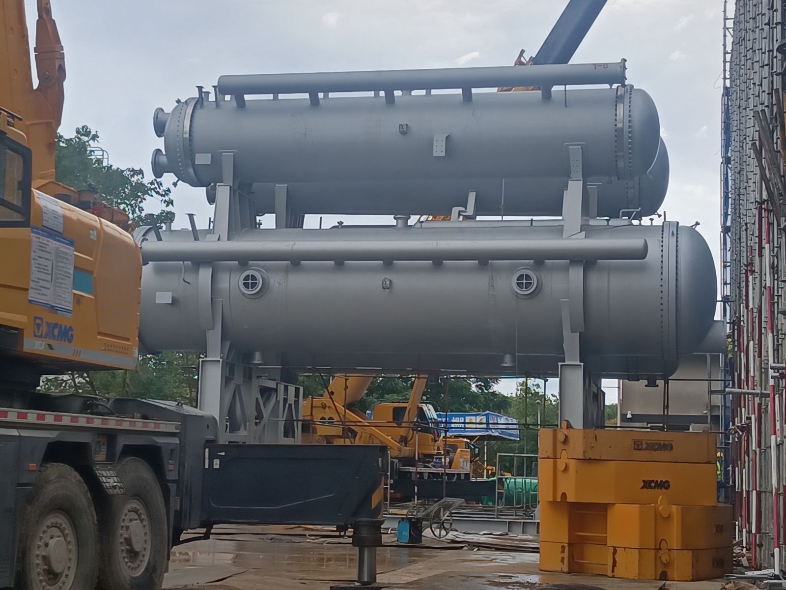 我公司為普泛能源定制的萬千瓦級低品位熱源制冷制冰設備,現(xiàn)場實現(xiàn)一次吊裝成功。該設備單套總噸位達500噸,兩套設備均一次性精準就位。其可廣泛應用于乙二醇、合成氨、綠氨、半導體、電廠等多個領域。