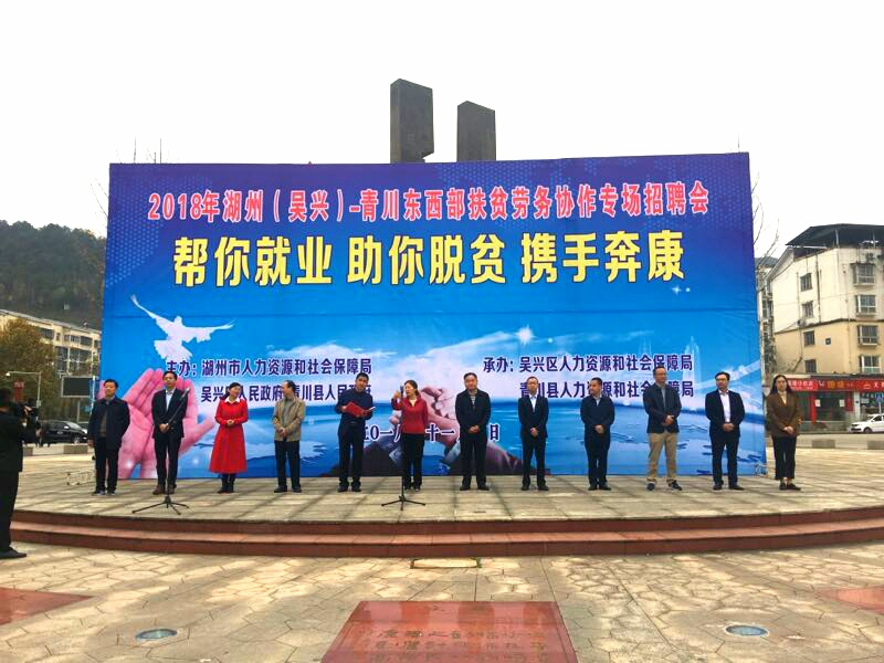 11月3日,浙江湖州(吳興)——青川2018年東西部扶貧勞務(wù)協(xié)作專場招聘會在青川縣木牘廣場順利舉行。我公司積極響應(yīng)湖州就業(yè)局號召,履行企業(yè)應(yīng)盡的社會責(zé)任,盡最大的力量幫助貧困群眾就業(yè)脫貧。